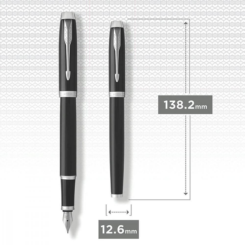 IM Black CT FP F – перьевая ручка Parker с тонким стальным пером из базовой линейки коллекции IM. Статусный письменный инструмент в классическом универсальном дизайне, сочетающем черный глянец и серебристую хромированную отделку.