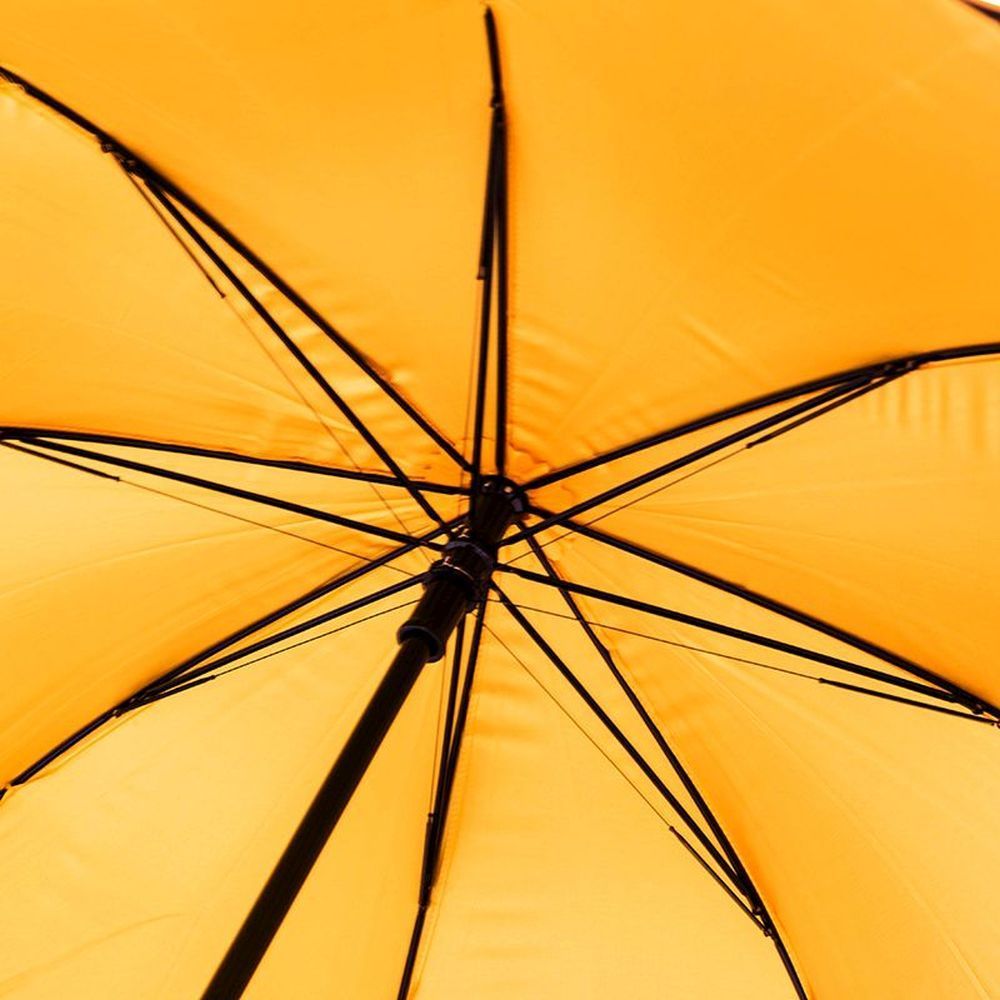 Стильный зонтик с двойным слоем нейлона - верх чёрного цвета а снизу цветной материал. Рекламная печать будет смотреться красиво, если её выполнить тем же цветом, как нижний нейлоновый слой.