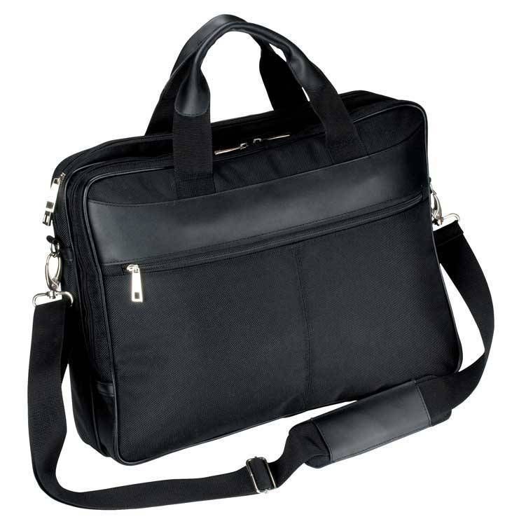 Элегантная сумка для ноутбука из 1680 D нейлона и настоящей кожи. Имеет 2 больших внутренних отделения, плюс 2 ячейки на молнией. А так же кармашек для мобильного телефона.
