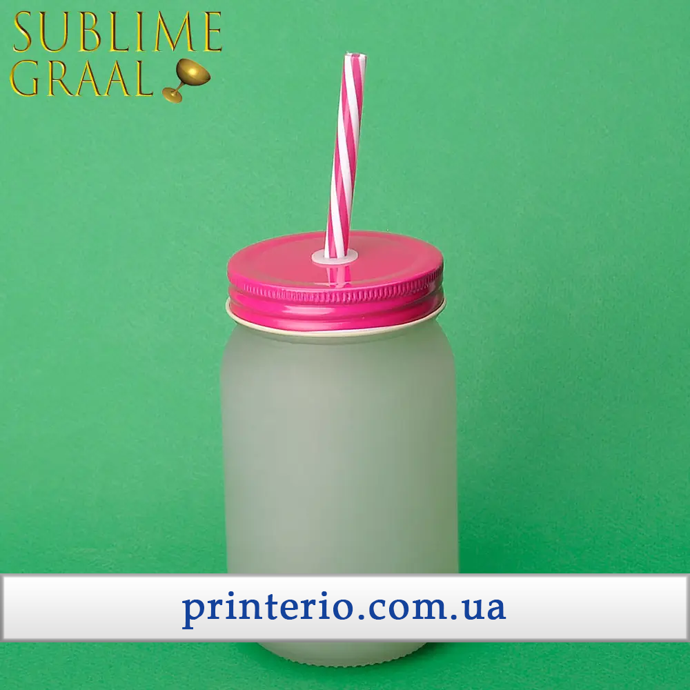 Банка для сублимации Sublime с лого с цветной трубочкой и крышкой матовая 450 мл