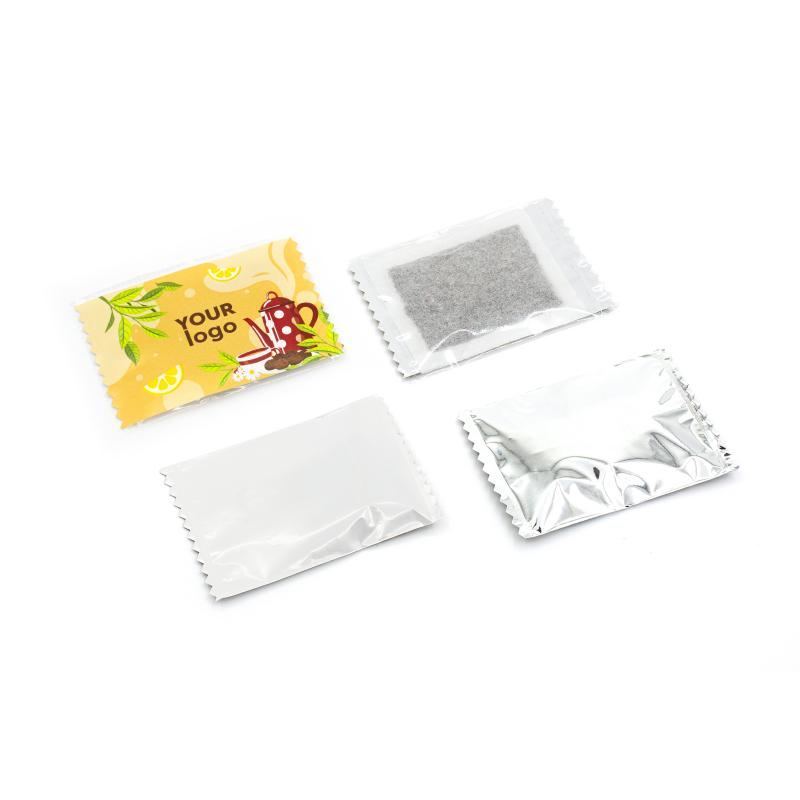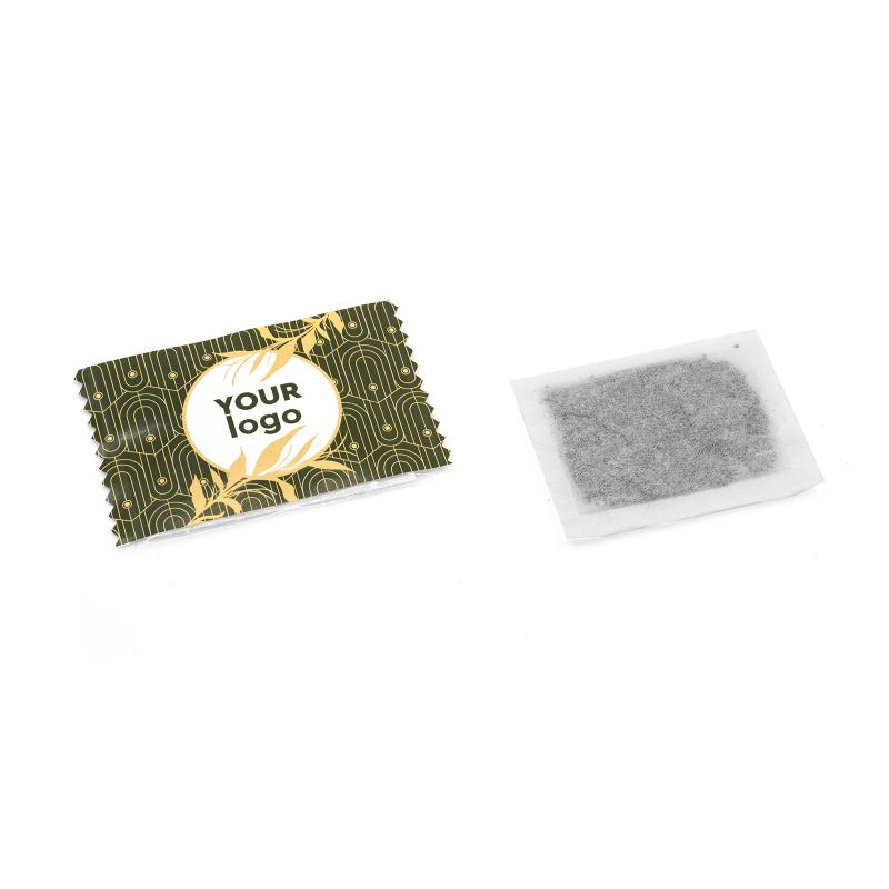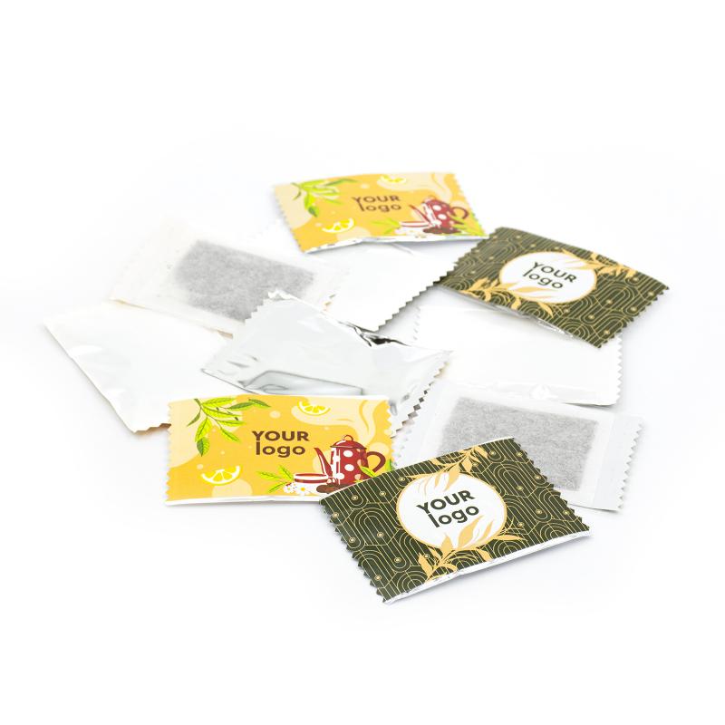Индивидуально брендированный пакетик чая — идеальный вариант для отелей, офисов, конференций, рекламных акций или в качестве сувенира. Высококачественный чёрный чай с насыщенным ароматом представлен в двух вариантах: