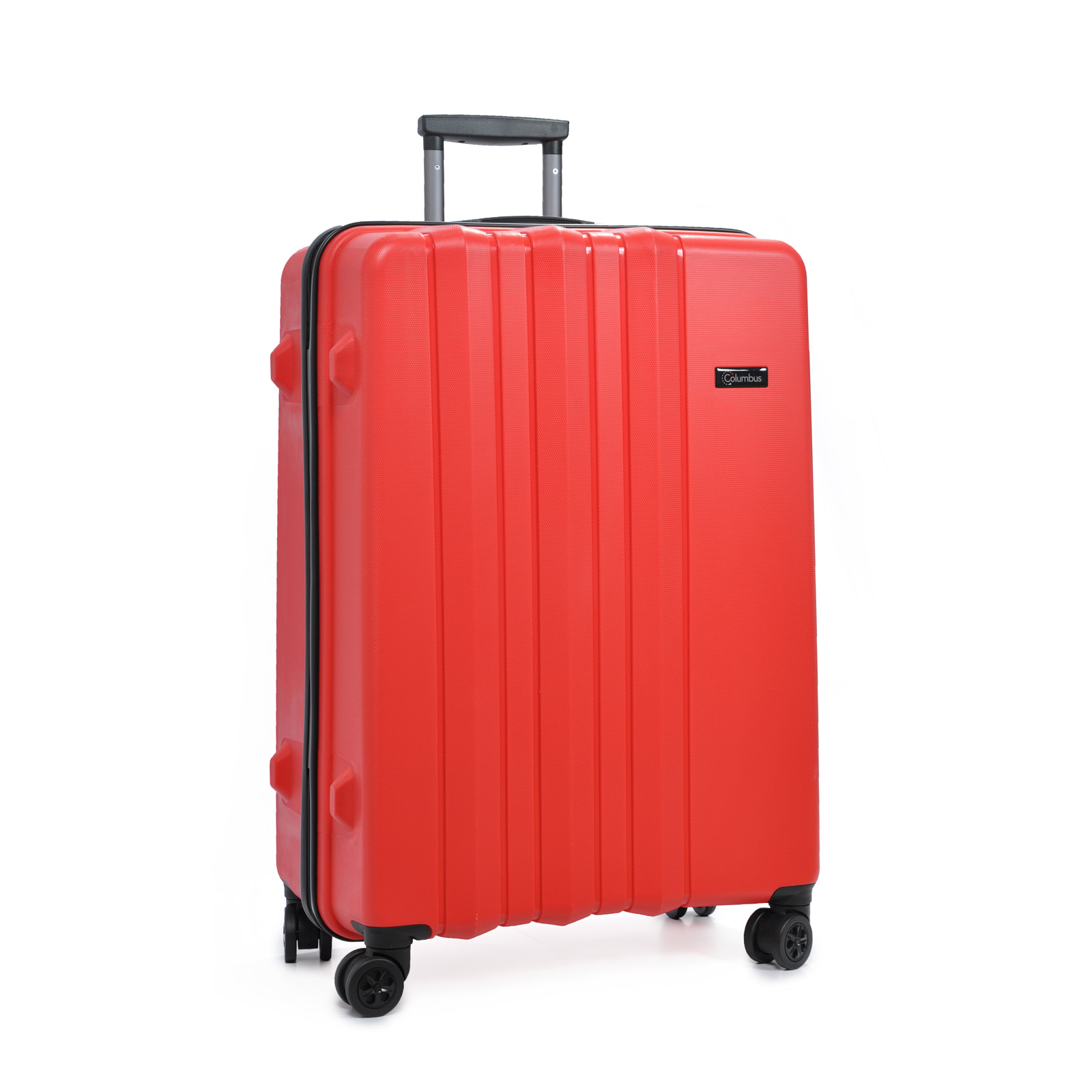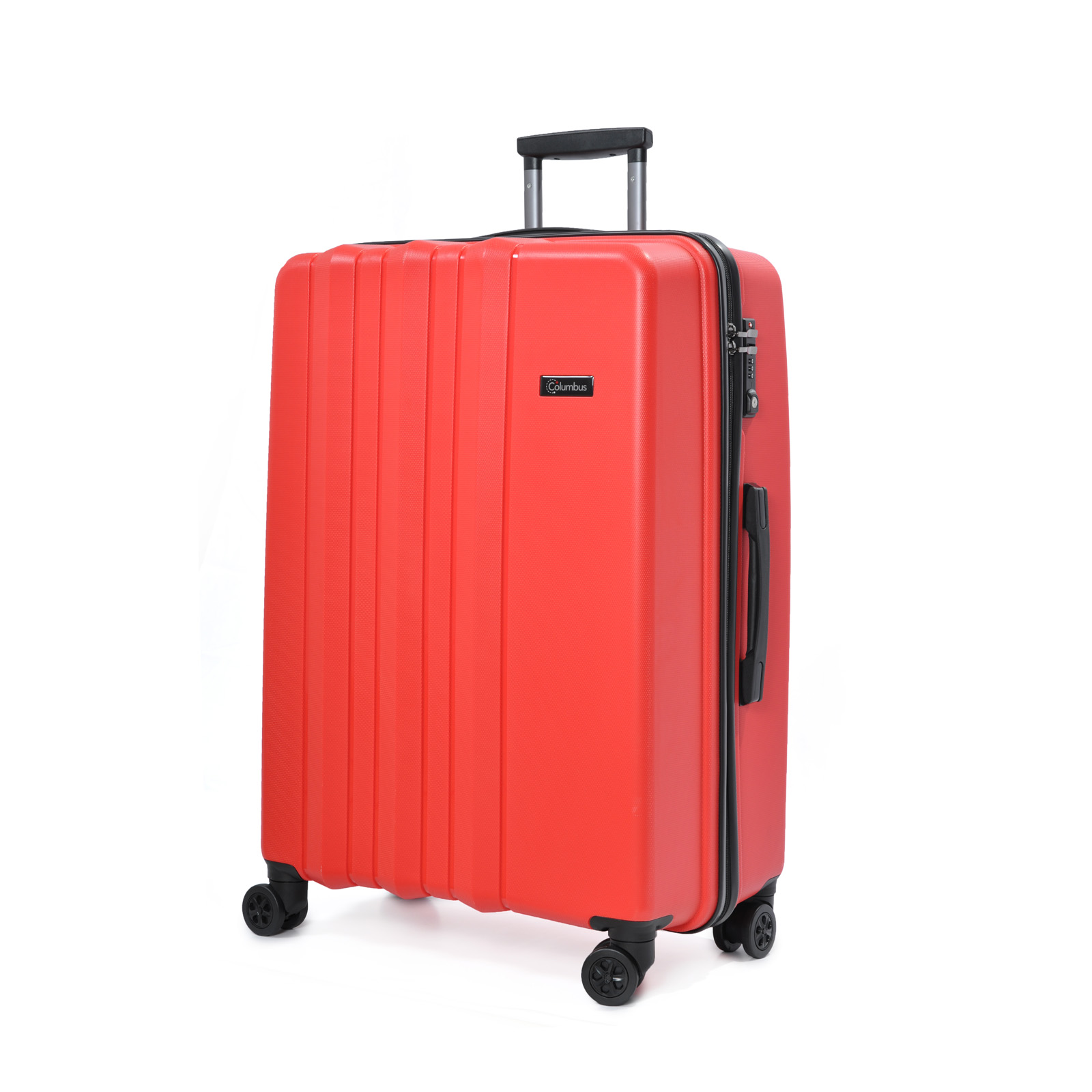 Сверхлегкий и крепкий чемодан на 8-ми (4х2) колесах TM Columbus. Оснащена кодовым замком системы TSA, алюминиевой телескопической ручкой с фиксаторами. Внутри обшита тканью, имеет 2 отделения, разделяемые диафрагмой и карман на молнии для мелких вещей; эластичные пояса для фиксации вещей.