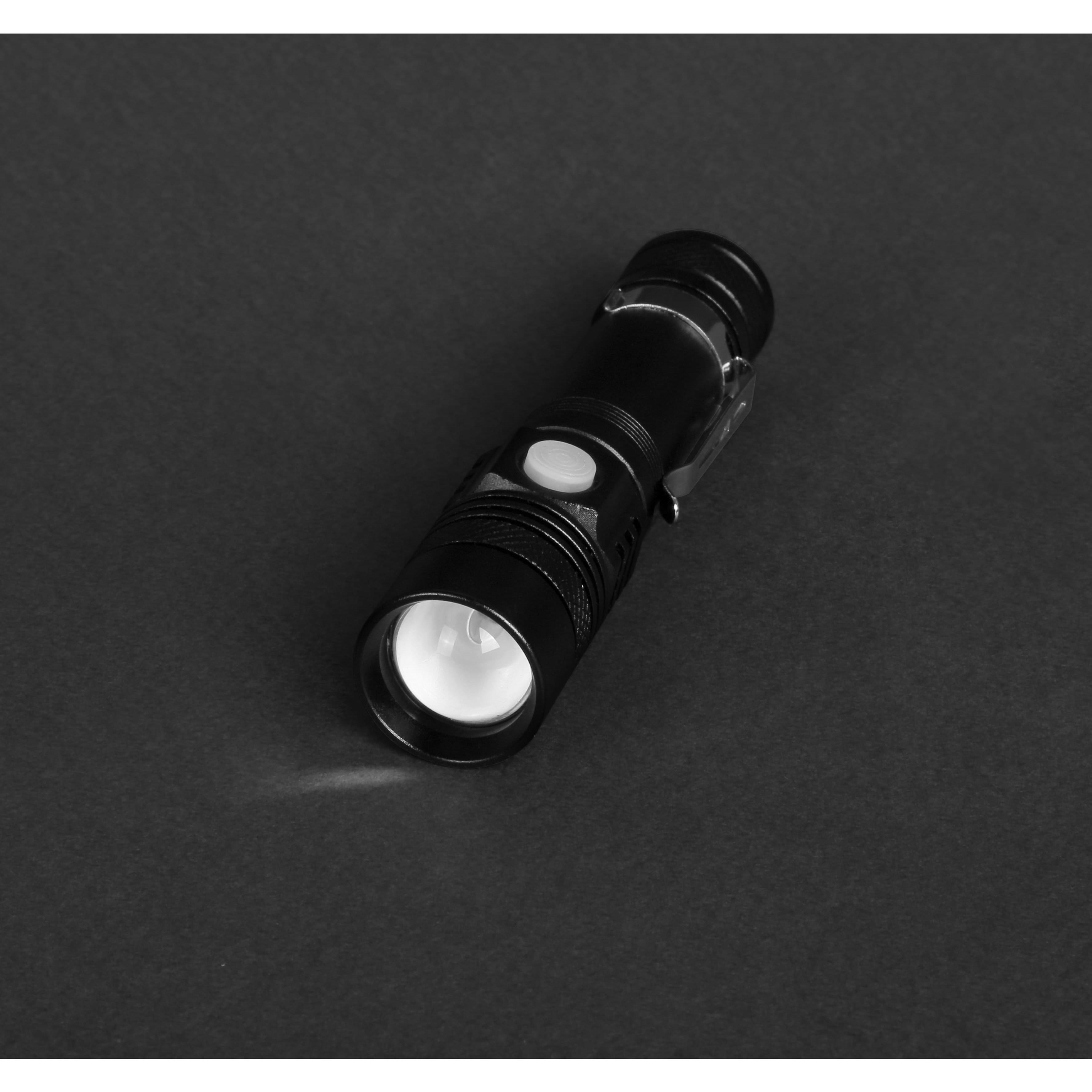 Черный фонарик Focus, TM Discover с зарядкой от USB с логотипом