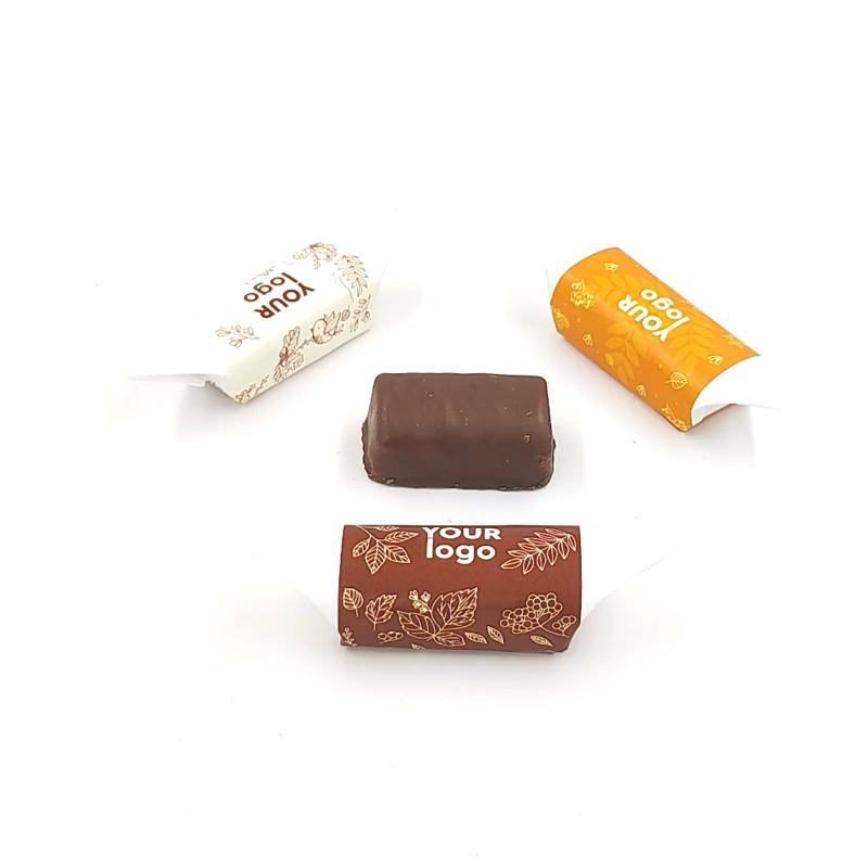 Конфета KROCK & GO с логотипом, 13 г — это вкусное сочетание арахисово-карамельной пасты в нежной шоколадной глазури. Благодаря компактным размерам (85 × 23 × 15 мм) и яркой полноцветной упаковке из мелованной бумаги (90 г), эта сладость идеально подходит для рекламных кампаний, выставок или брендированных подарочных наборов.