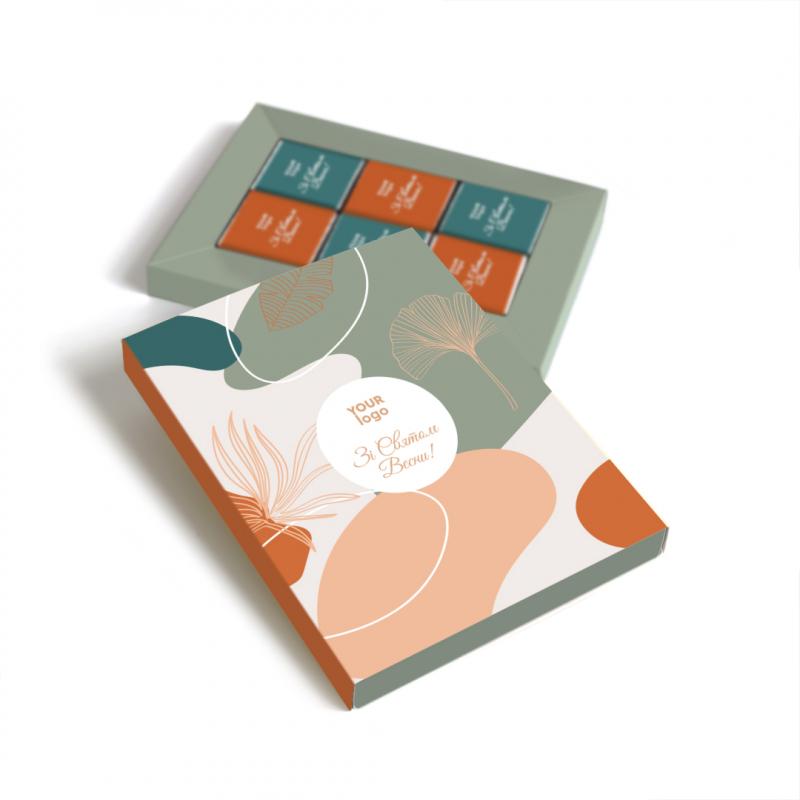 Молочный, черный, белый шоколад в большой коробке типа "Пинал" под нанесение логотипа. Легко дарить. Весомо в руке. Дорого смотрится. Шоколад натурального состава, хороших вкусовых качеств. Срок годности: 10 месяцев.