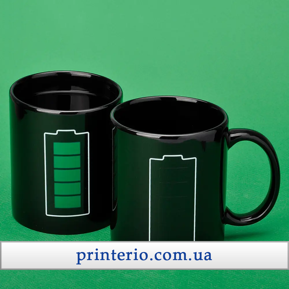 Кружка для сублимации Sublime ХАМЕЛЕОН Батарейка с вашим лого черная 330 мл