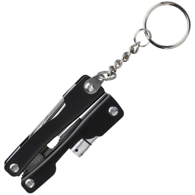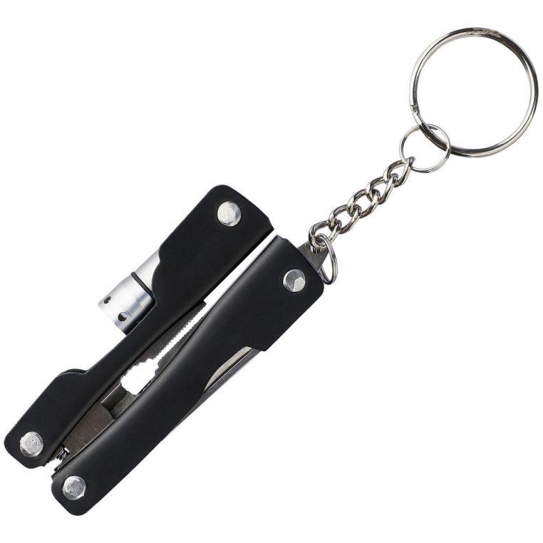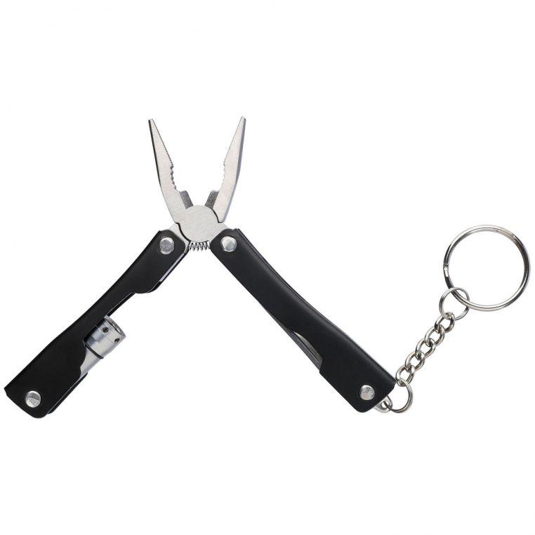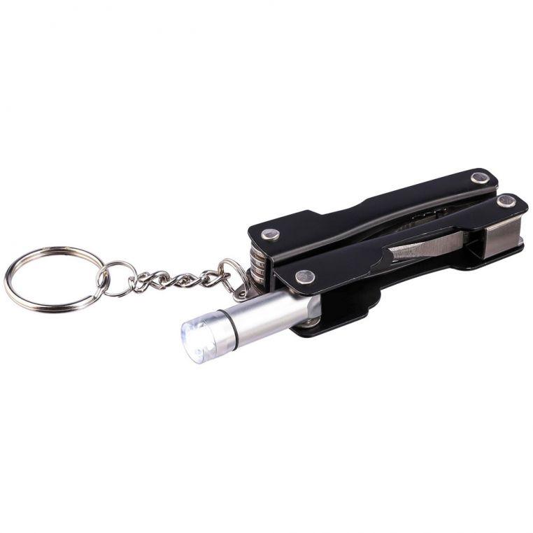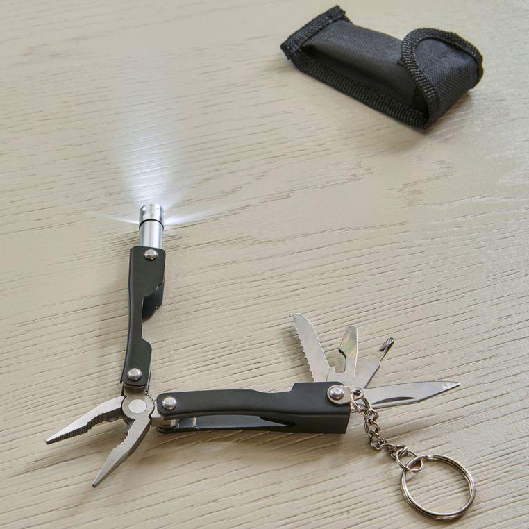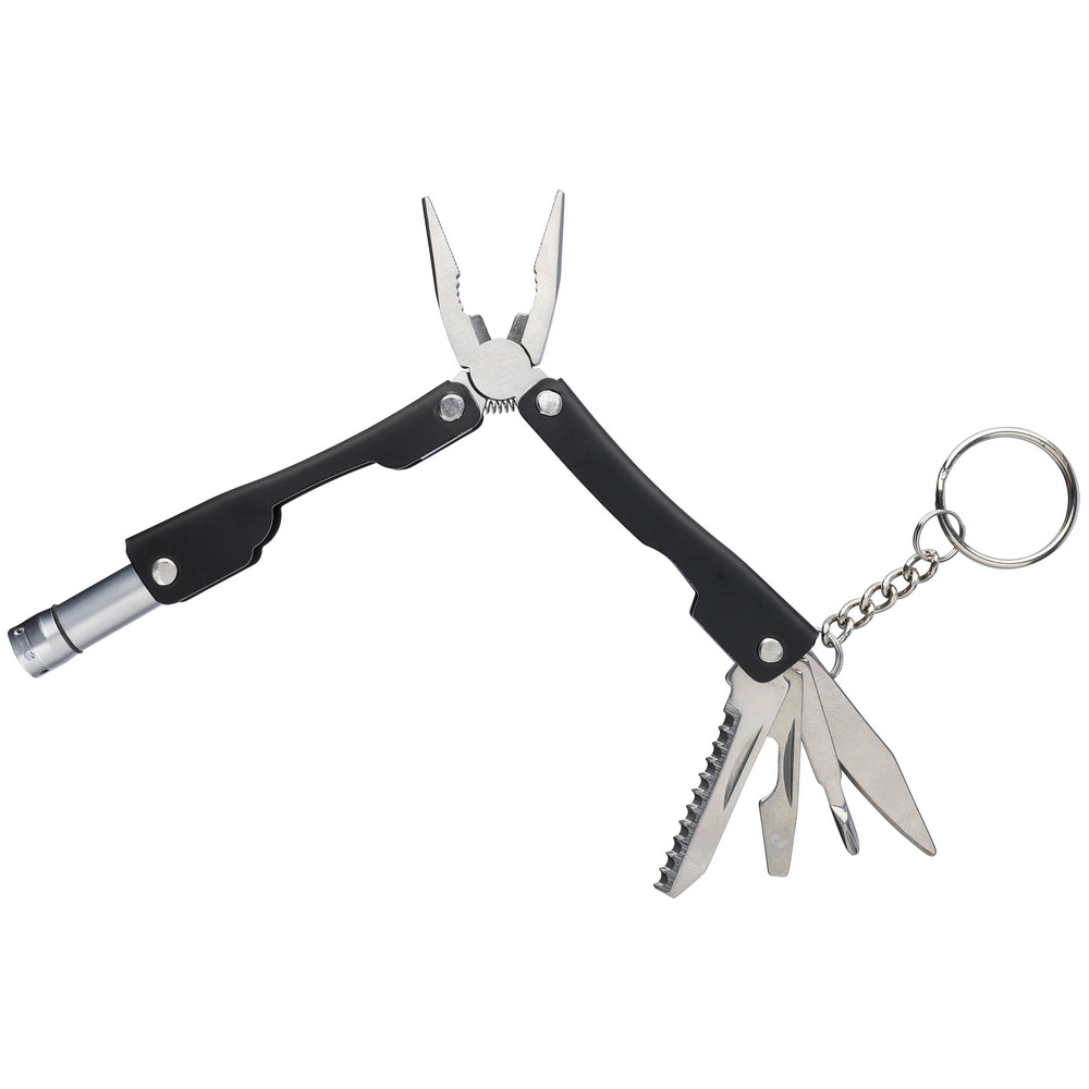 Многофункциональный инструмент 10-в-1 из нержавеющей стали. Мультитул оснащён кольцом для ключей. В наличии фонарик с 1 светодиодом (батарейки входят в комплект). Поставляется в чехле из полиэстера 600D с креплением для ремня.