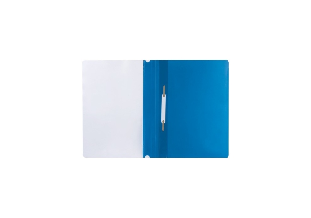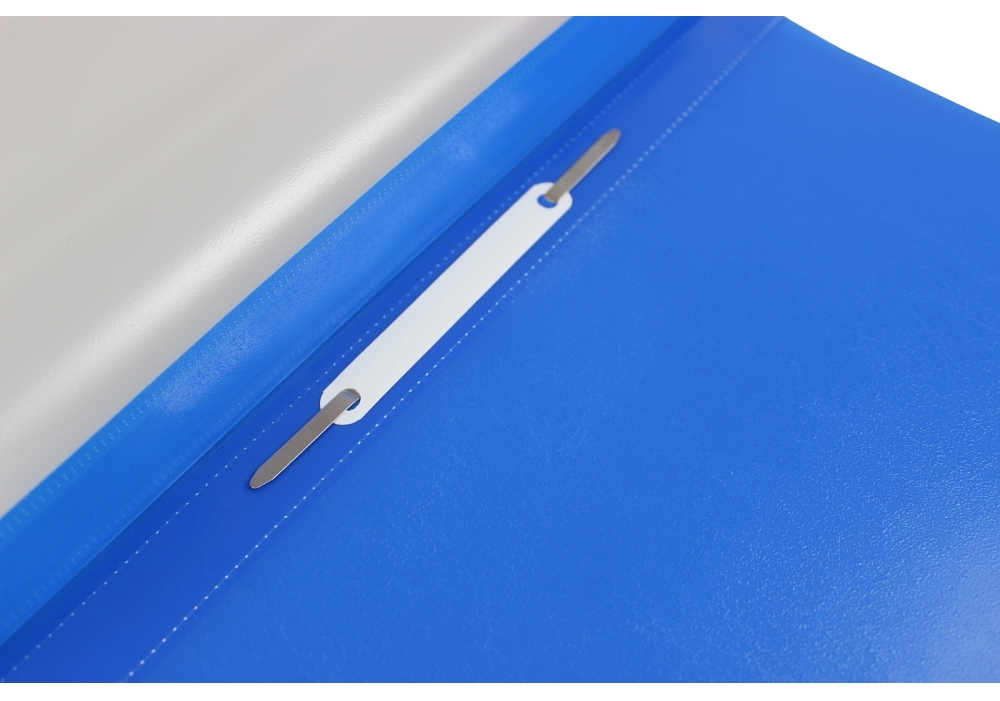 Папка-скоросшиватель формата А5 глянцевая изготовлена из полипропилена, имеет прозрачный верхний лист. На лицевой стороне расположен карман с пластиковой полосой белого цвета, на которой можно указать содержание.