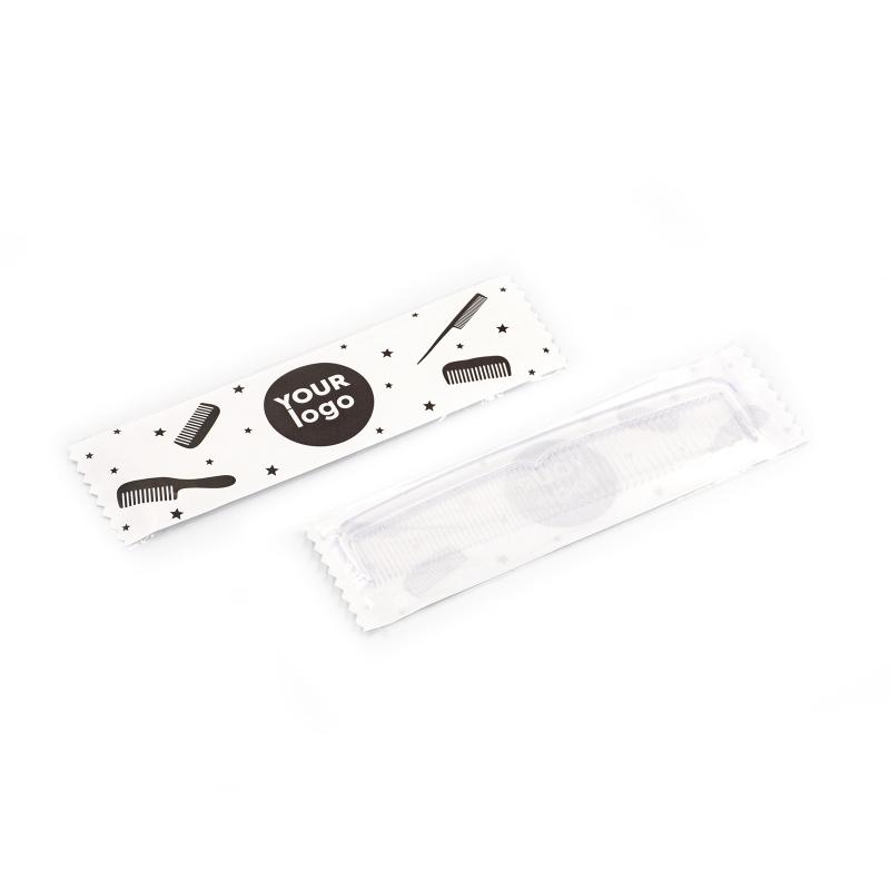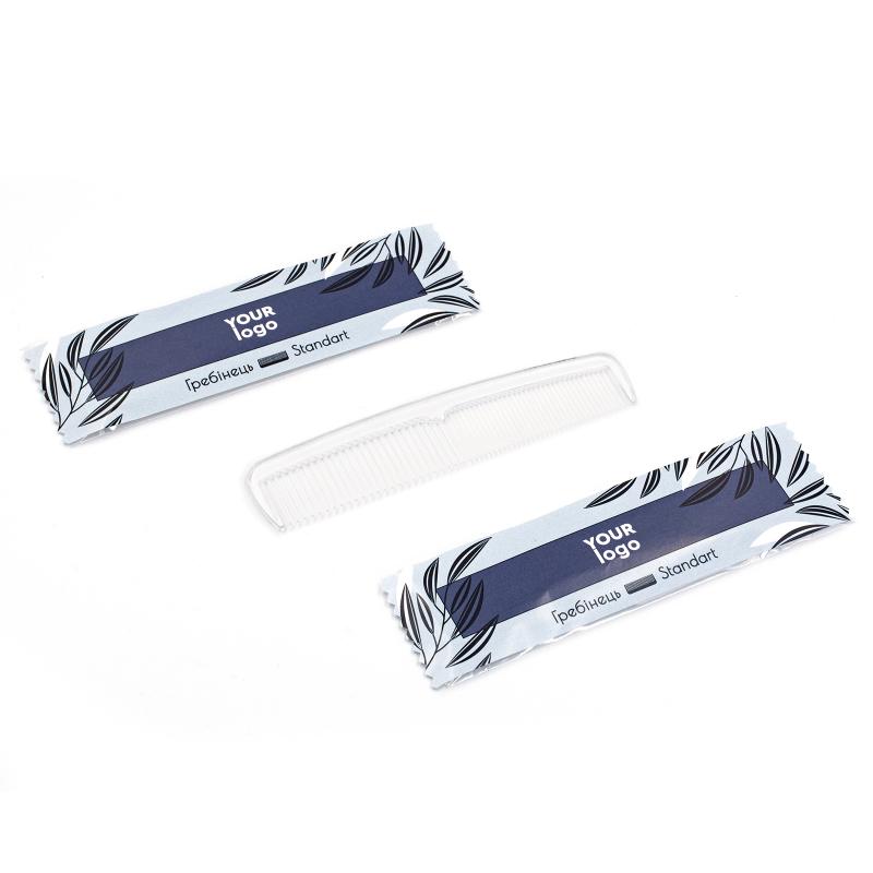 - Упаковка: Расчёска упакована в полипропиленовую плёнку с бумажным покрытием (тип флоу-пак), что обеспечивает презентабельный внешний вид и защиту от внешних воздействий.