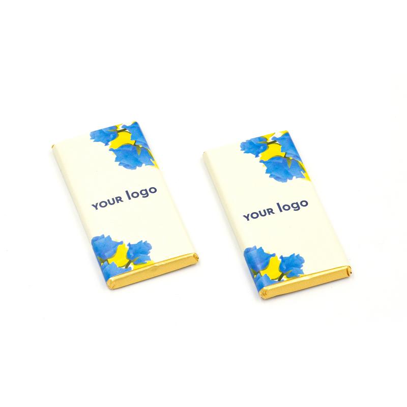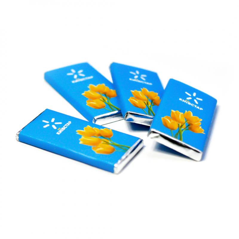Молочный 33 % или черный 60 % шоколад с сертификатом качества под нанесение логотипа. Срок годности:10 месяцев