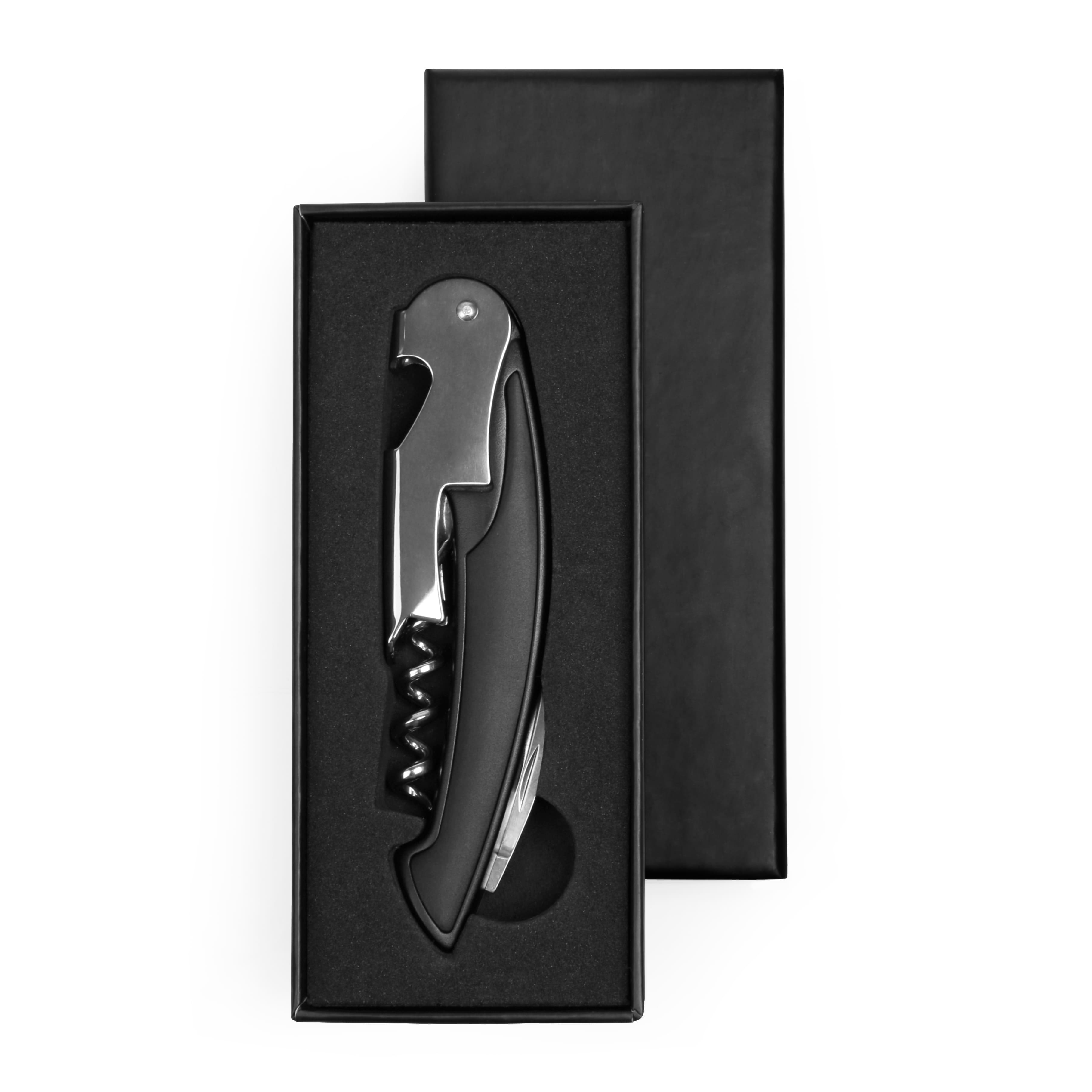 Корпус штопора выполнен из нержавеющей высококачественной стали и алюминиевой ручкой. Состоит из штопора, открывалки и ножа сомелье.