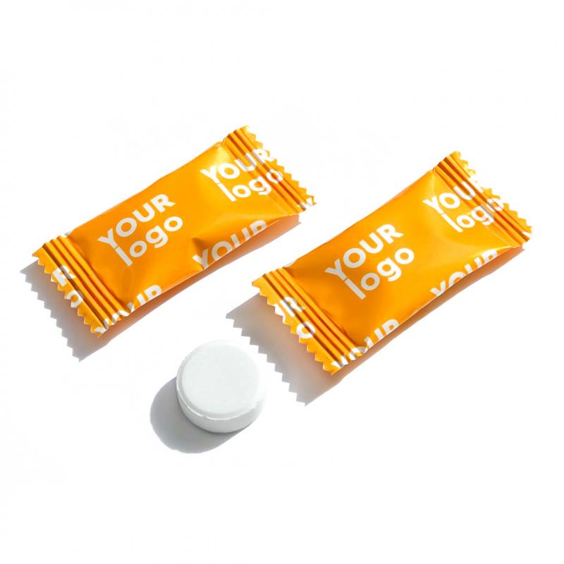 Яскравий та смачний промо-сувенір ― аскорбінка вагою 3 г з можливістю нанесення повнокольорового логотипу. Ідеально підходить для акцій, виставок, подарункових наборів або промо-кампаній.