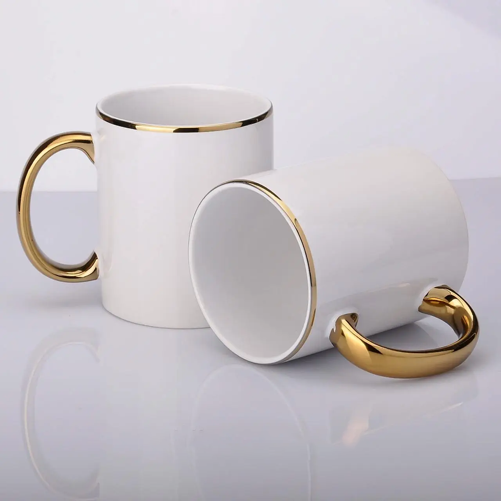 Чашка для сублімації Sublime PREMIUM з лого біла з золотим обідком та ручкою 330 мл