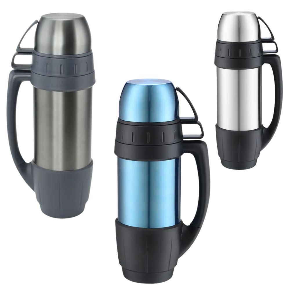 Однозначно не термокухоль! МАХ об'єм. Великий, дорожній термос VIP якість під нанесення логотипу. Напій зберігає свою температуру 48 годин. Стінки термоса не окислюються і не іржавіють. Технологічна та красива модель. Ви оціните комфорт від широкої ручки для перенесення та дивовижної кришки. Вона складається з 2 окремих чашок. Корпус Campania виготовлений з нержавіючої сталі. Між подвійними стінками вакуумний простір. Низ термоса стійкий та покритий поліпропіленовою масивною накладкою. Це захищає його у дорозі від падіння.
