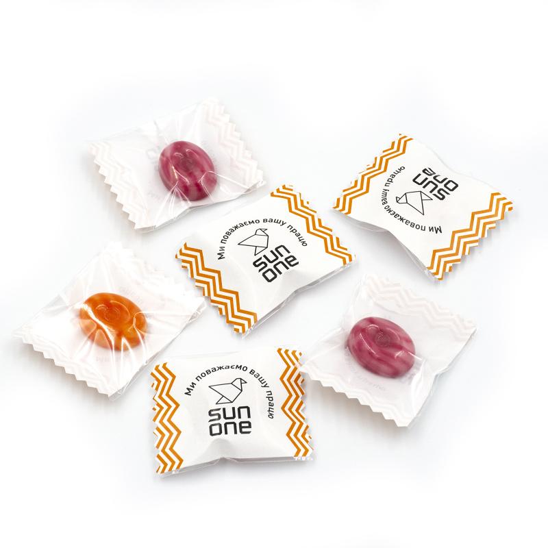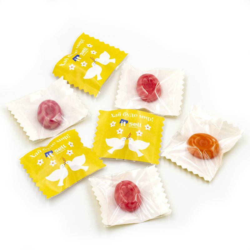 Мікс карамелі зі смаками йогурт-полуниця, йогурт-персик та йогурт-вишня під нанесення логотипу. Смачні, знайомі з дитинства цукерки у корпоративній упаковці. Гарантуємо безпеку та відповідність усім ТУ (є всі сертифікати, гарантії якості).