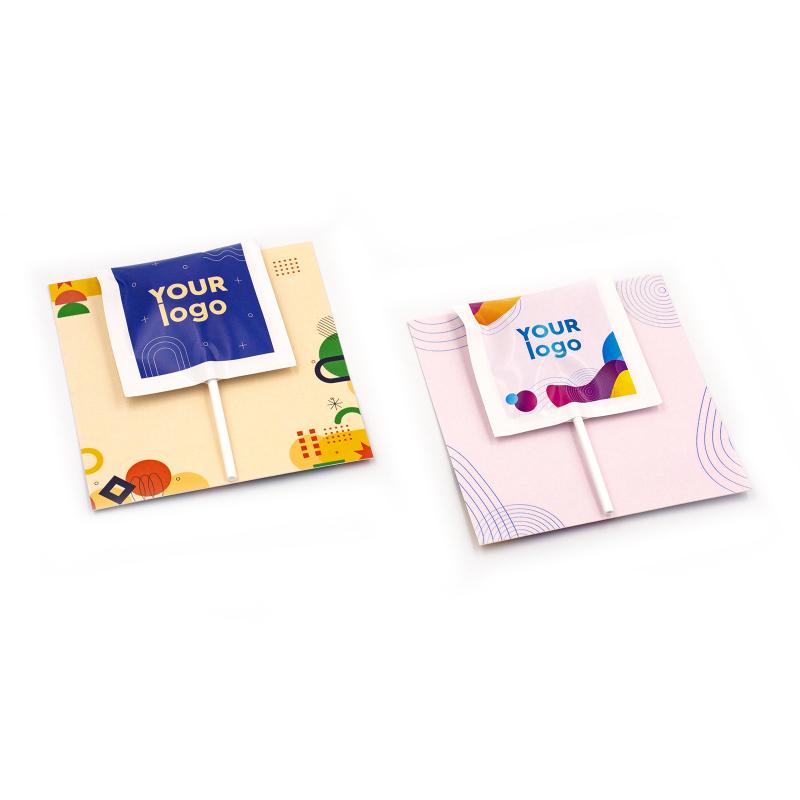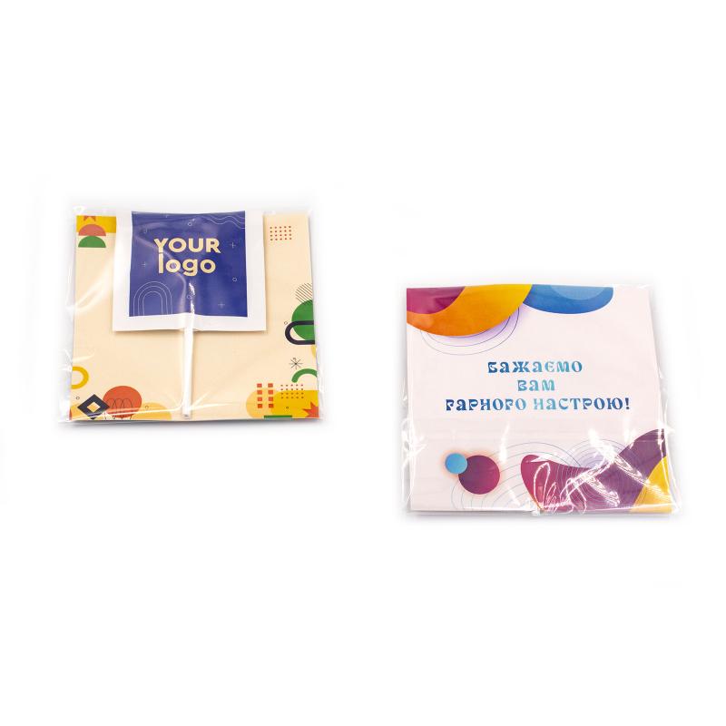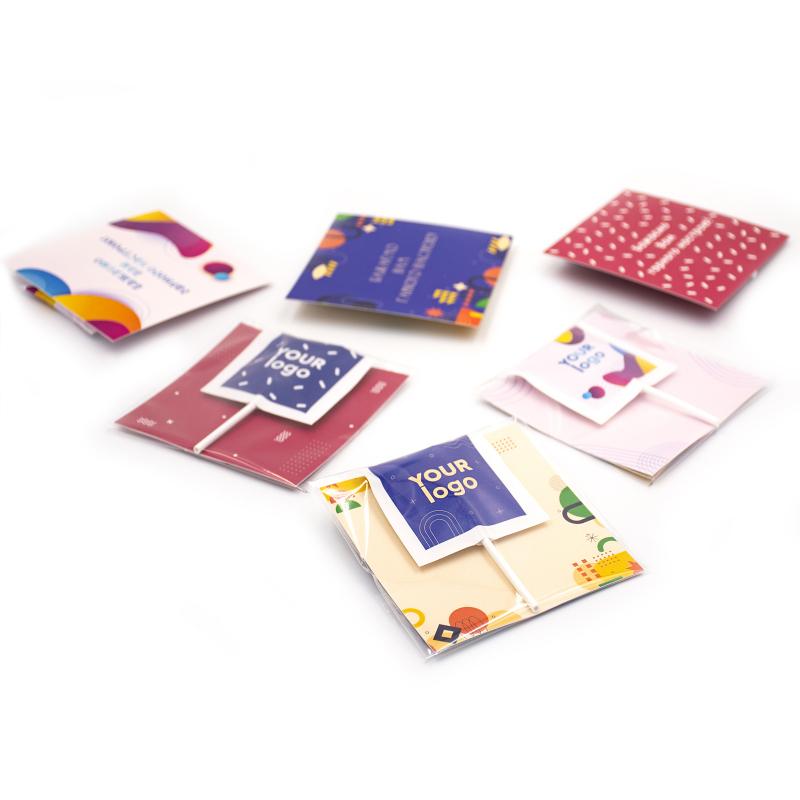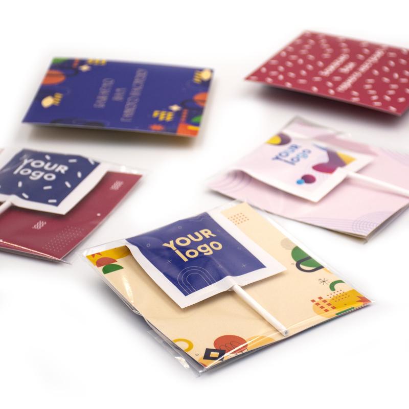 Подаруйте солодкий комплімент або ефективно підкресліть корпоративний стиль завдяки оригінальній листівці з логотипом, що поєднує смачну цукерку та повнокольоровий дизайн. Ідеально підходить для презентацій, виставок, промоакцій або в якості приємного сувеніра для клієнтів і партнерів.