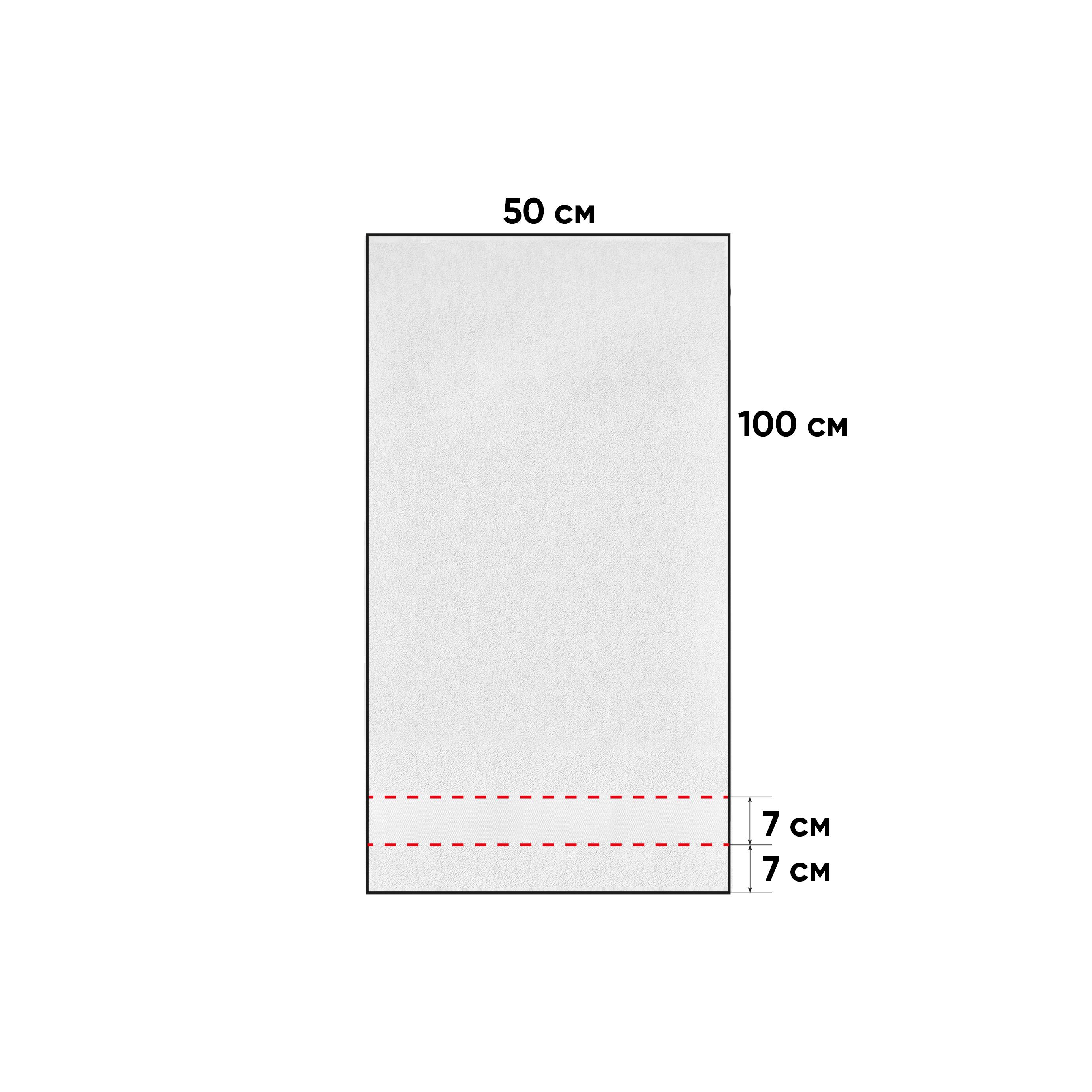 Рушник під нанесення логотипу. Щільність в'язки – 450 г/м2. Подвійне будівництво на згині. Передбачено функціональну петлю. Для нанесення з одного краю розташований бордюр шириною 7 см. Рекомендована температура прання 40 градусів від виробника.