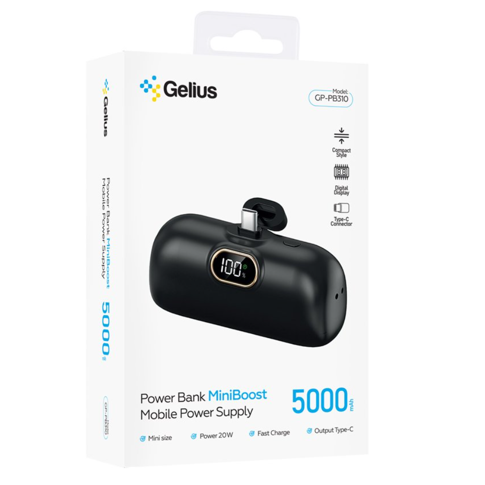 Однією з ключових особливостей Gelius MiniBoost є конектор Type-C, який дозволяє заряджати пристрої напряму без додаткового кабелю. Це зручне рішення допоможе вам уникнути зайвих аксесуарів.