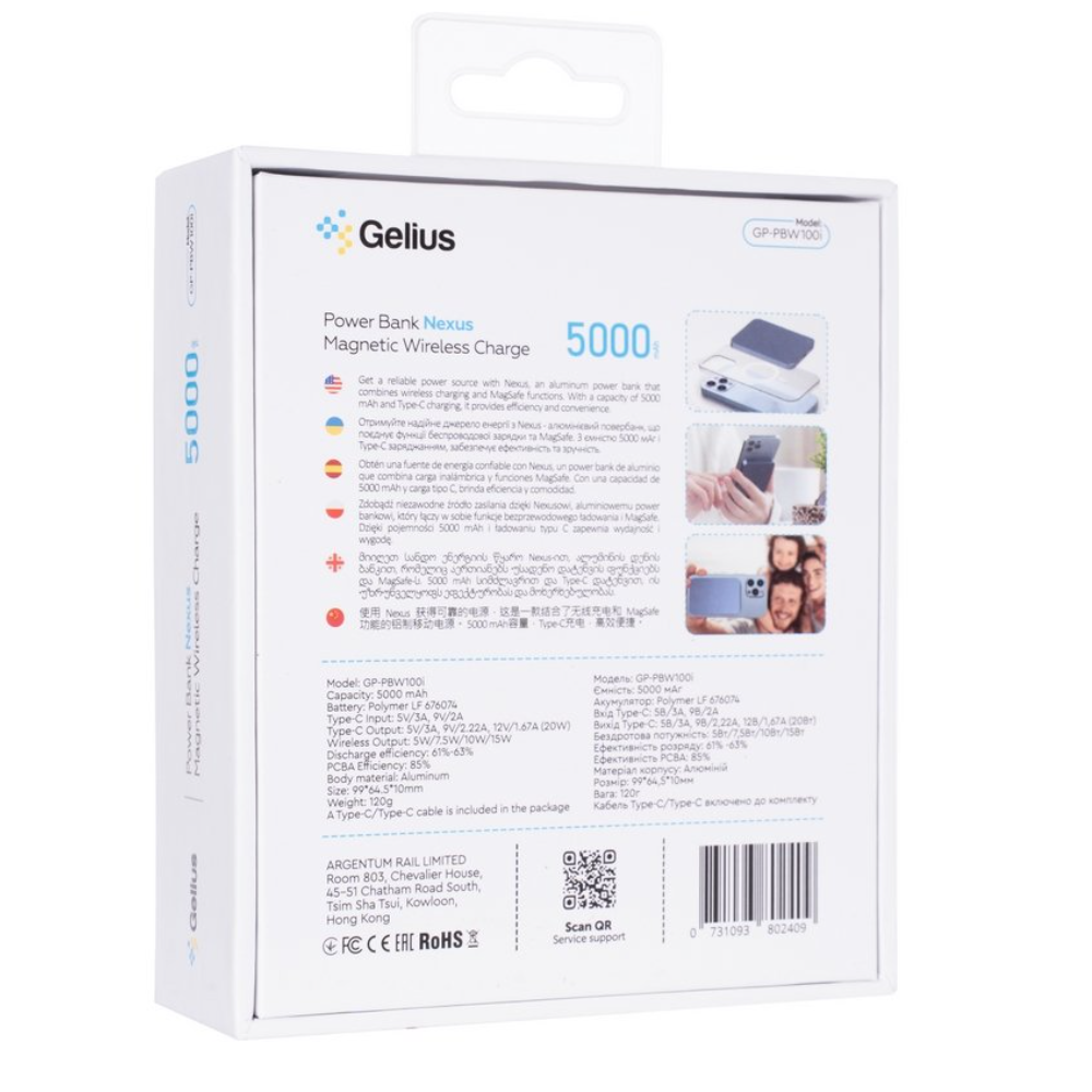 Повербанк Gelius Nexus Magnetic Wireless Charge GP-PBW100i 15W 5000mAh з логотипом