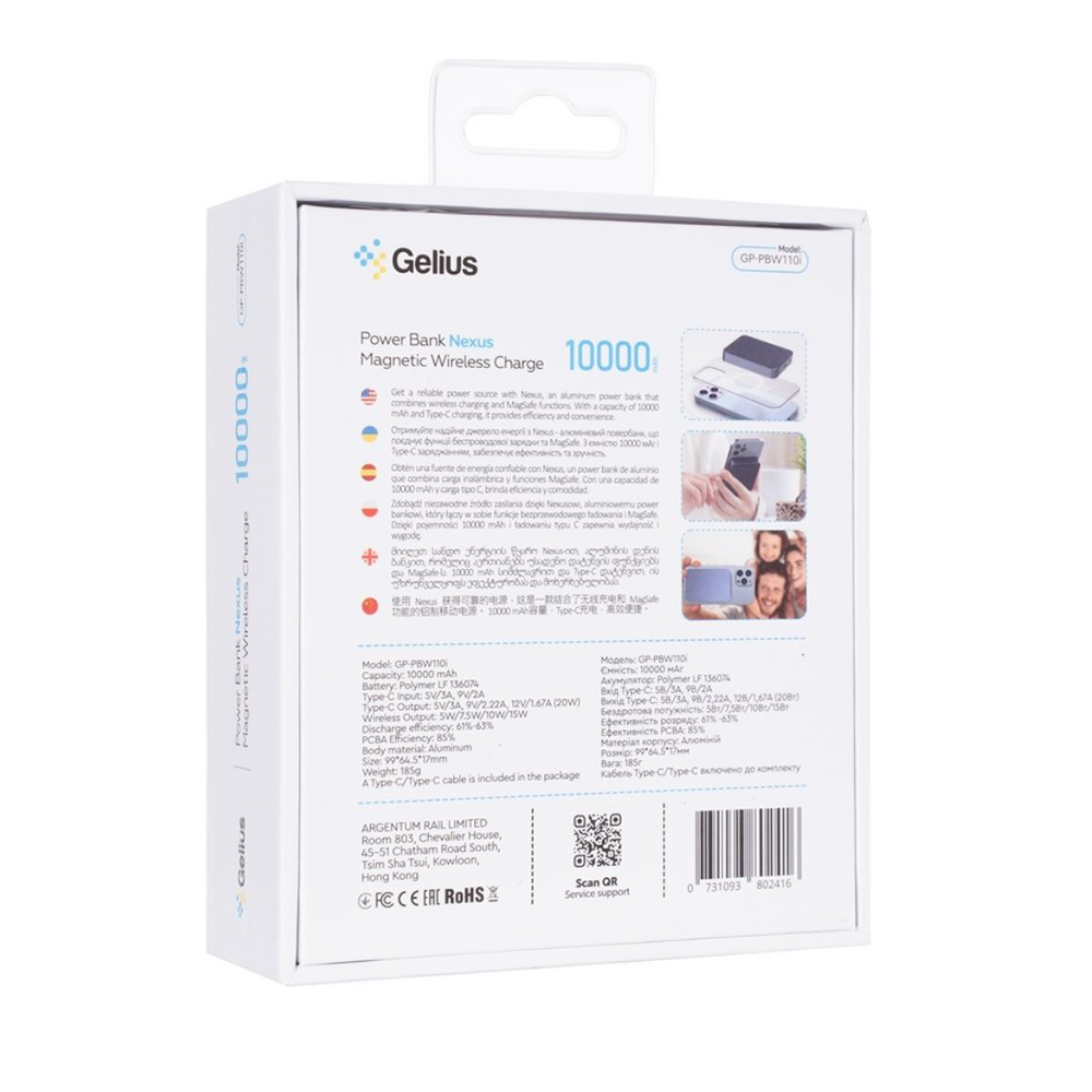 Повербанк Gelius Nexus Magnetic Wireless Charge GP-PBW110i 15W 10000mAh з логотипом