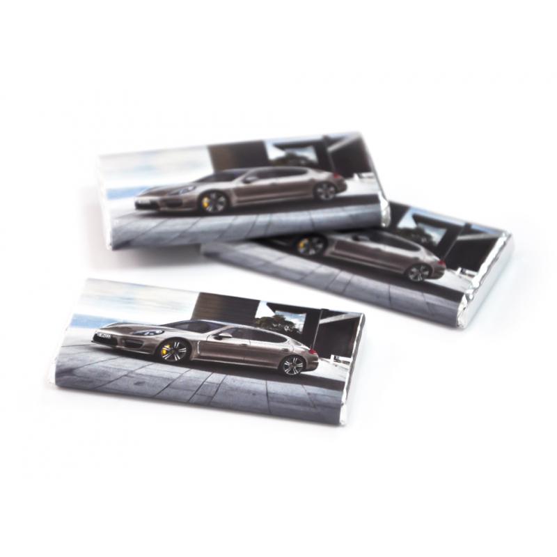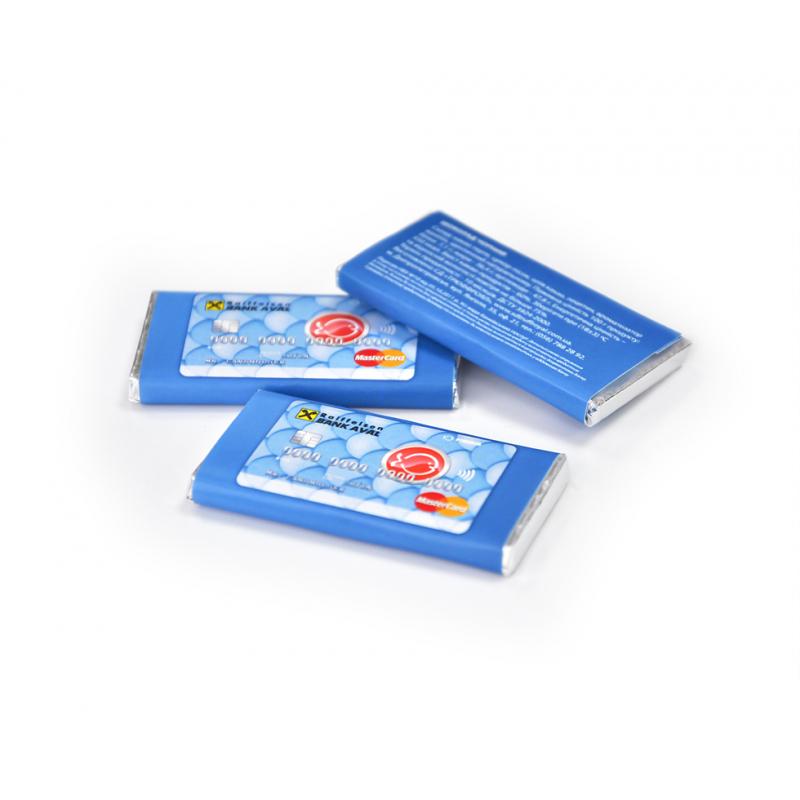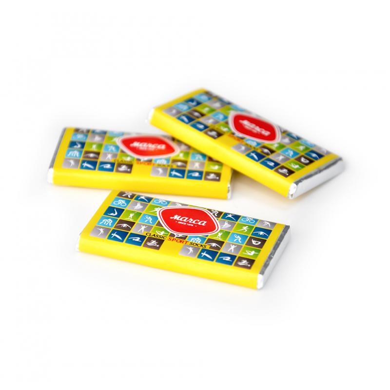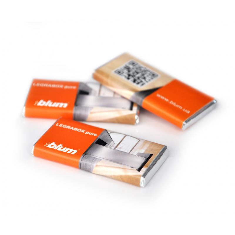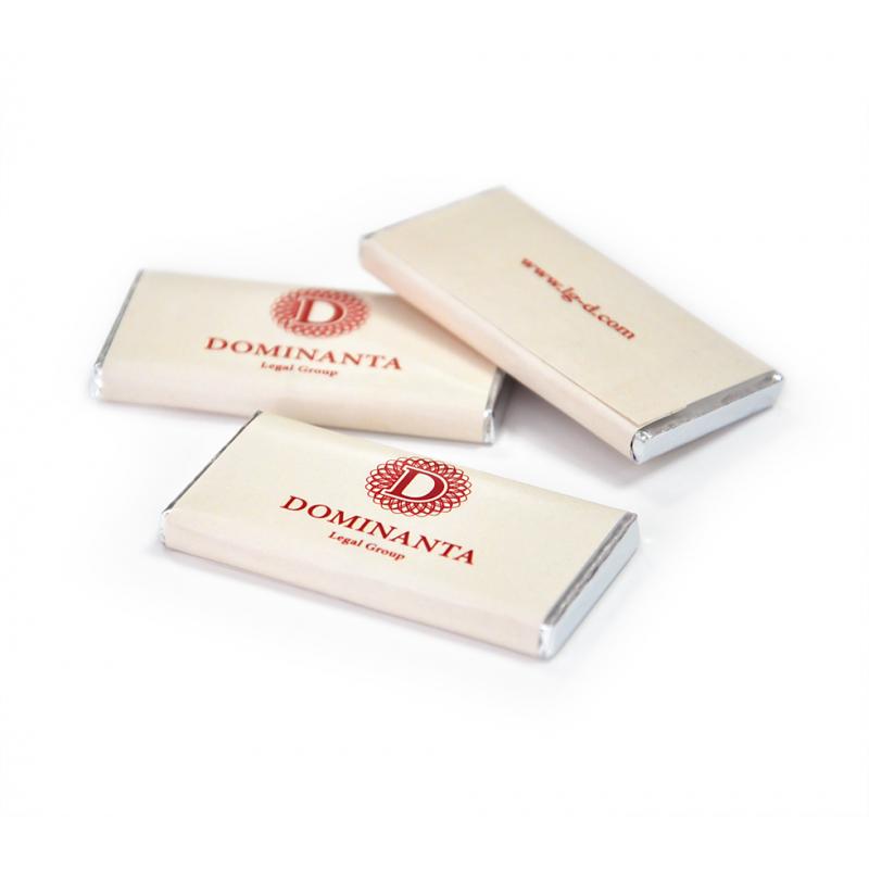 Шоколад з логотипом 10 г — це натуральний німецький преміум-шоколад у форматі флат із вагою 10 г та розміром 64 х 32 х 5 мм. Пропонується у трьох смаках: 2в1 Чорний 60%/Чорний 60%, 2в1 Молочний 33%/Молочний 33% та 2в1 Чорний 60%/Молочний 33%. Фольга доступна в кольорах золото або срібло, що підкреслює елегантність продукту. Упаковка — якісний крейдований папір 90 г із повнокольоровим друком, який гарантує яскраве і привабливе оформлення. Ідеальний варіант для корпоративних подарунків та іміджевих акцій.