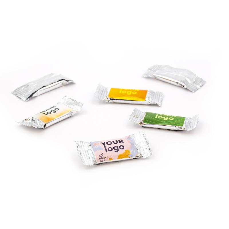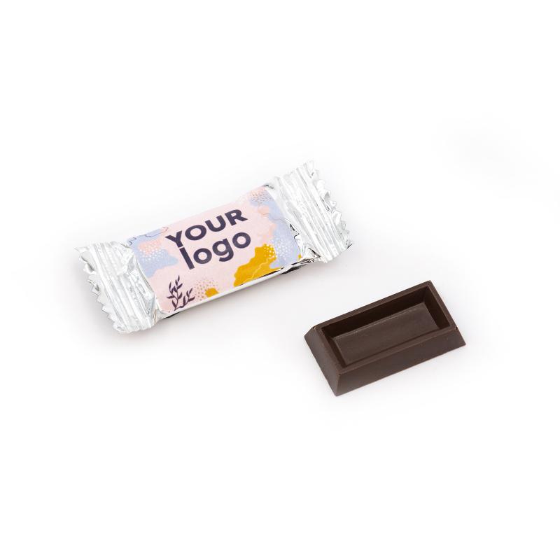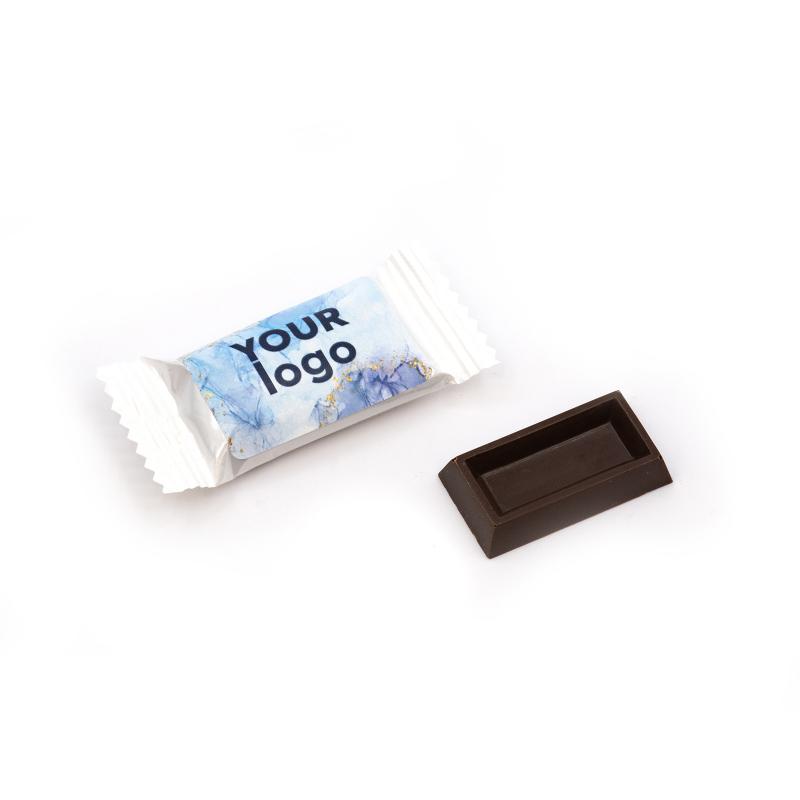 Подаруйте клієнтам або партнерам приємну солодку дрібничку — брендований шоколад вагою 3 г у стильній індивідуальній упаковці. Ідеально підходить для виставок, заходів, подарункових наборів або як комплімент до замовлення.