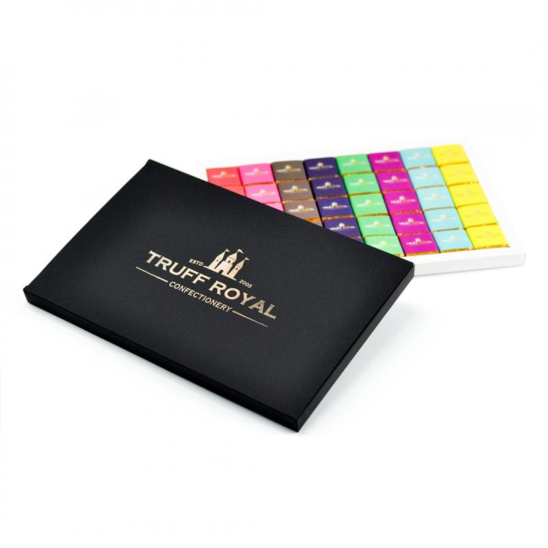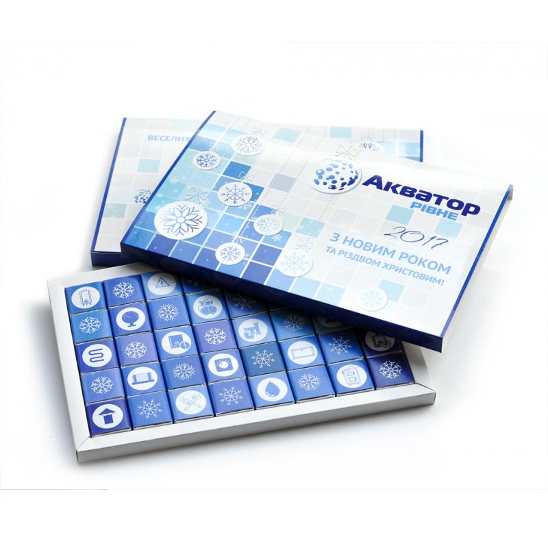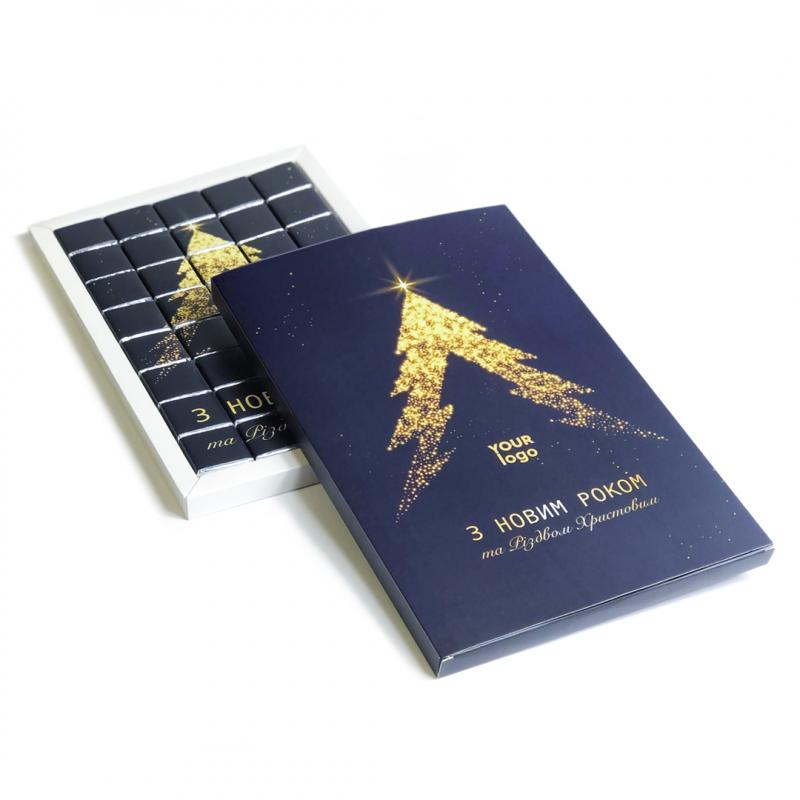 Преміум німецький шоколад (200 г) у стильній упаковці типу пенал розміром 289×190×17 мм. Начинка на вибір: чорний, молочний шоколад або мікс. Персоналізація включає логотип, повнокольоровий друк, вибір фольги (золото або срібло) та ламінування коробки (матове або глянцеве). Основа упаковки – біла без друку. Коробка виготовлена з щільного картону 230 г, етикетка – з мелованого паперу 90 г. Ідеальне рішення для корпоративних подарунків, презентацій або акцій бренду.