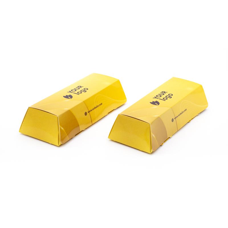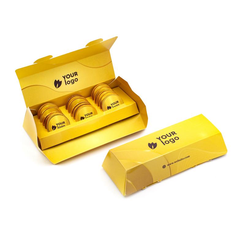 Преміальний подарунковий набір у вигляді золотого злитку — ідеальне рішення для корпоративних подарунків або промо-акцій. Упакований у стильну картонну коробку типу "книга" з можливістю нанесення логотипу. Можливе матове або глянцеве ламінування та друк фольгою (золото/срібло) для підвищення візуальної привабливості.