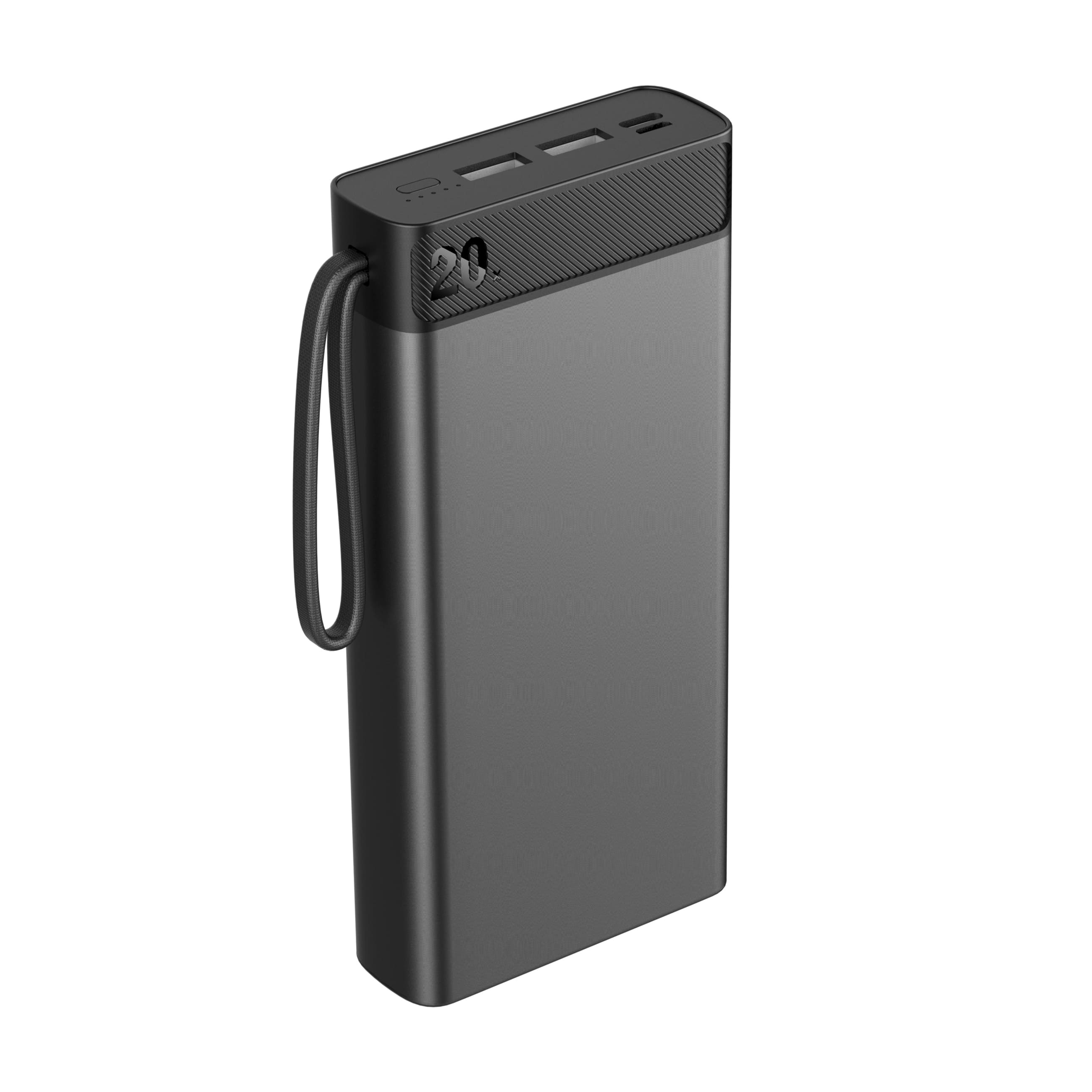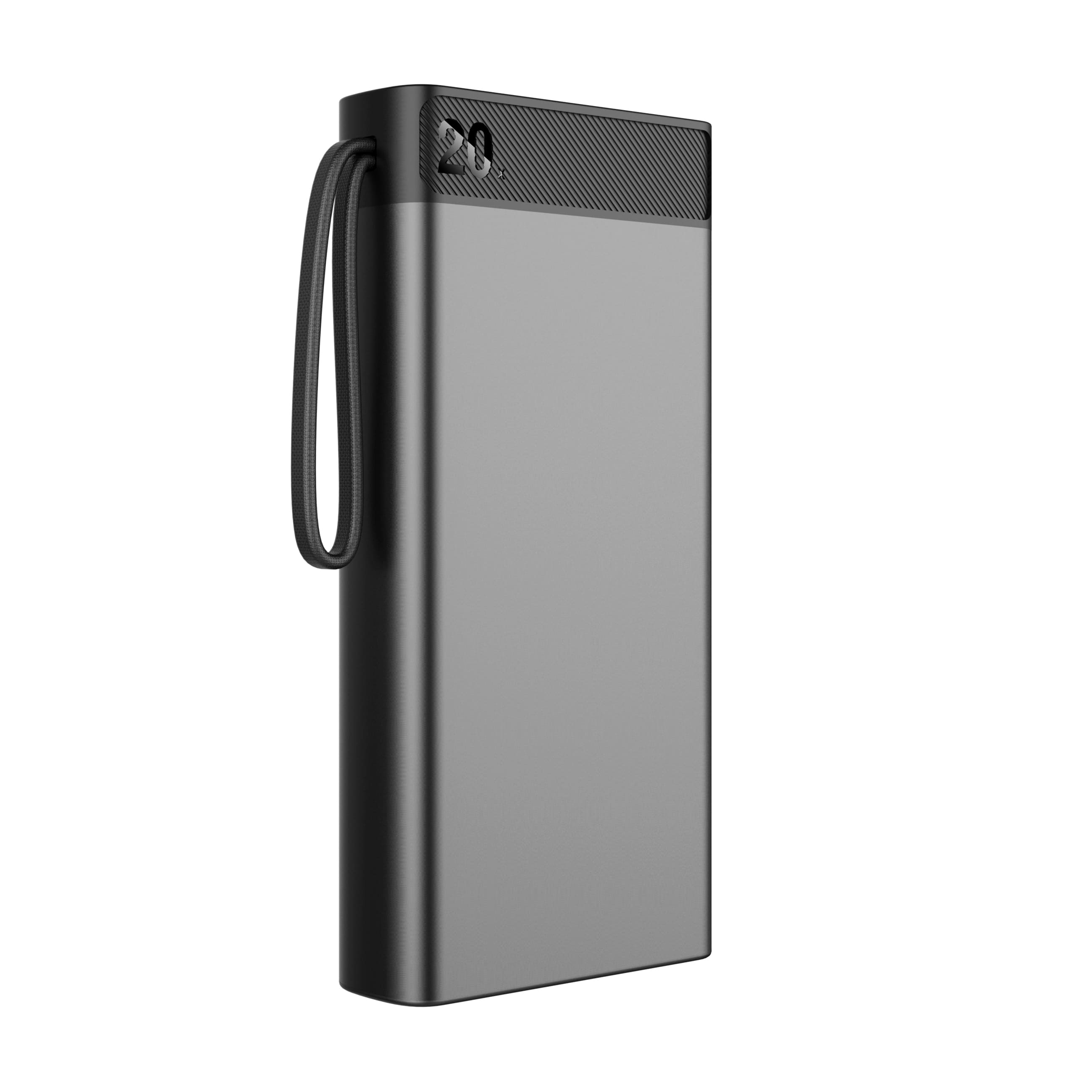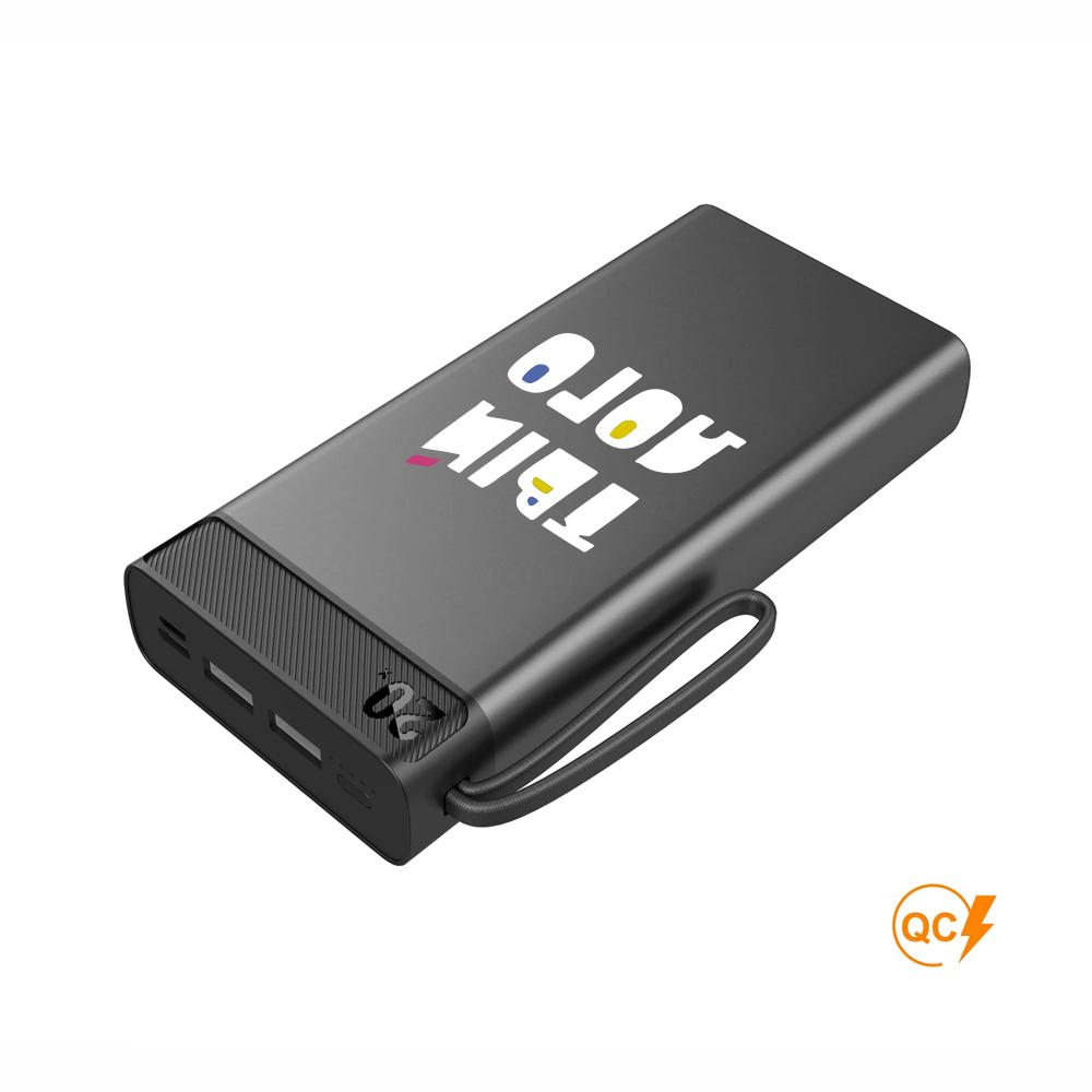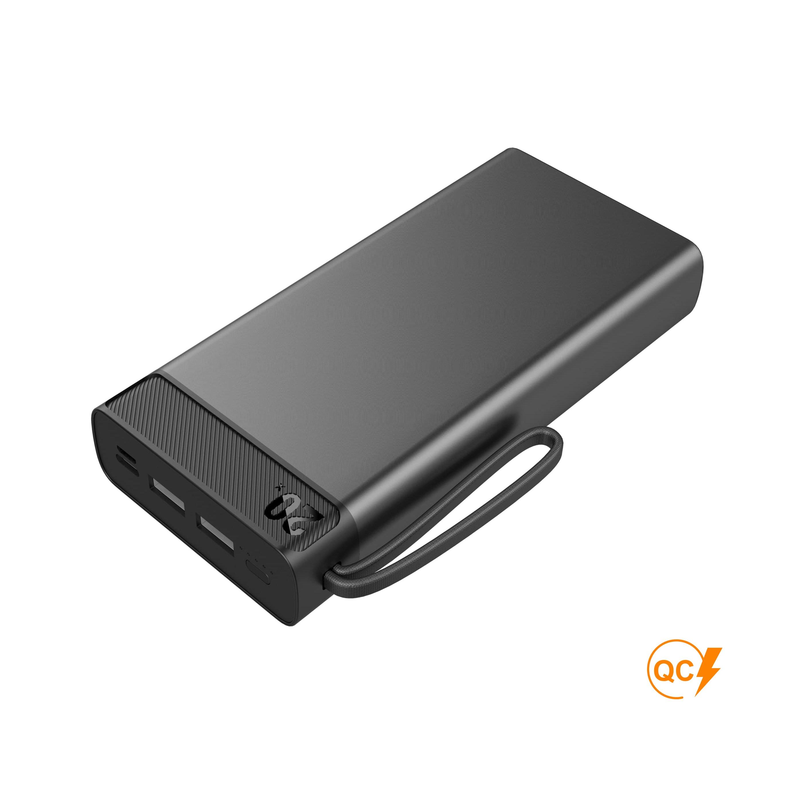 PD18W + QC3.0 quick charge Battery capacity: 20000mAh Material:Aluminum alloy+ABS Micro Input: DC 5V-2A Quick charge: 5V-2A,9V-2A,12V-1.5A Output USB: 4.5V2A, Quick charge DC 5V-3A,9V-2A,12V-1.5A Color option: Black Product size:140mm x 68mm x 26.8mm