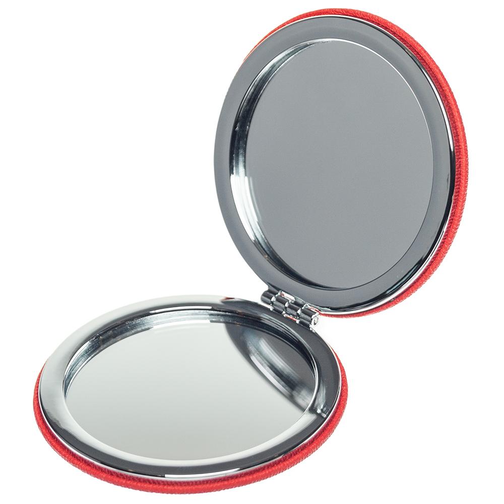 Зеркальце металл и кожзам 71 мм с логотипом компании